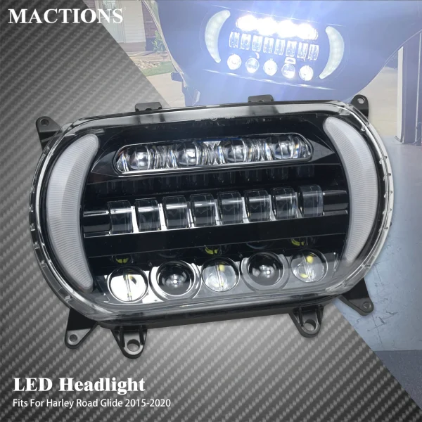 Motorcycle Front LED Headlight High Low Beam Lamp Turn Signal Running Light For Harley Touring Road Glide FLTRX 15-20 Waterproof